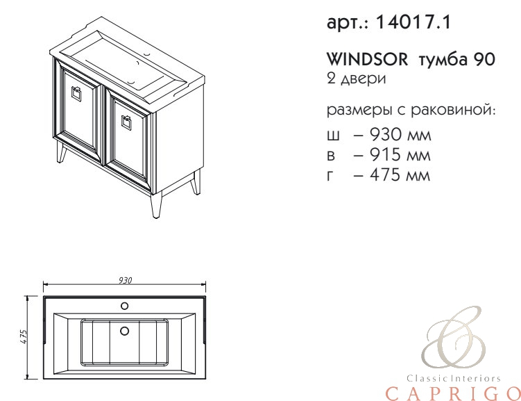WINDSOR тумба 90 выпускается в отделках: категория ЭМАЛИ – SPECIAL ENAMEL category реестра отделок CLASSIC раковина (фаянс)