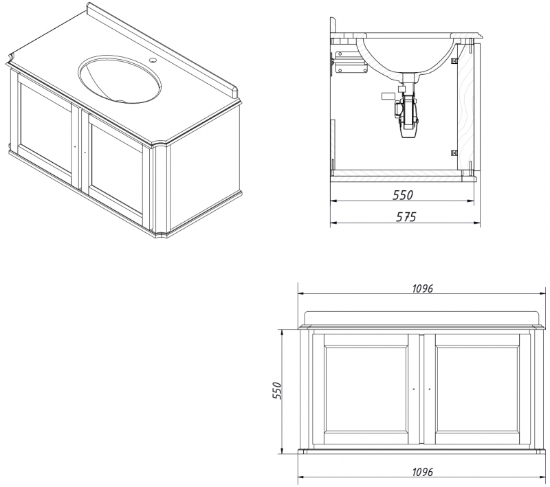Тумба подвесная для столешницы 110см с 2 дверьми. Выпускаются в эмалях из реестра отделок CLASSIC без патины. Варианты раковин(фаянс)арт.: 0222WK. Отдельно заказывается столешница