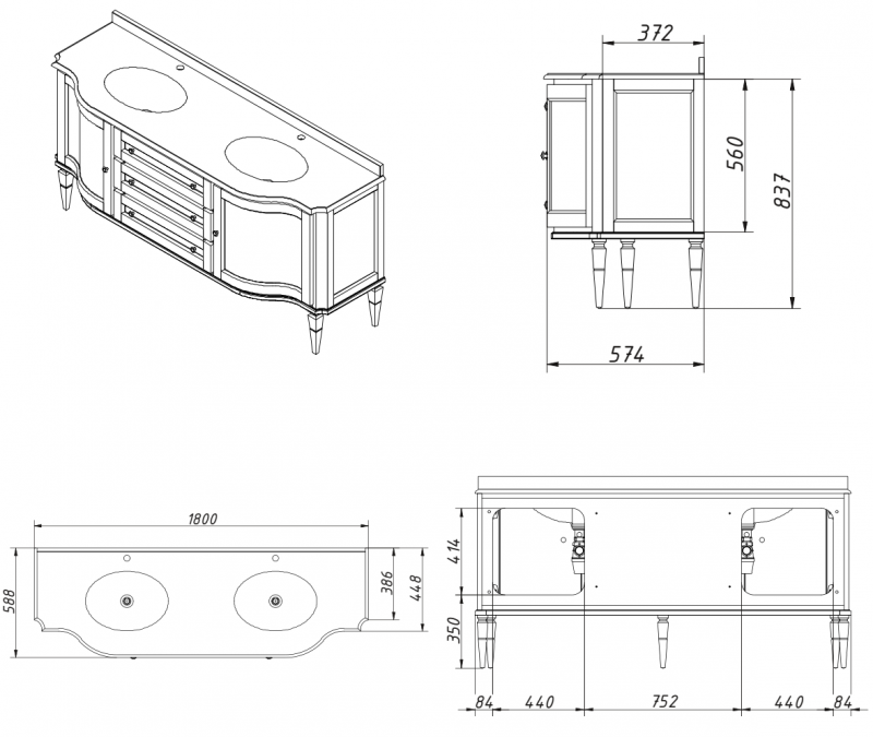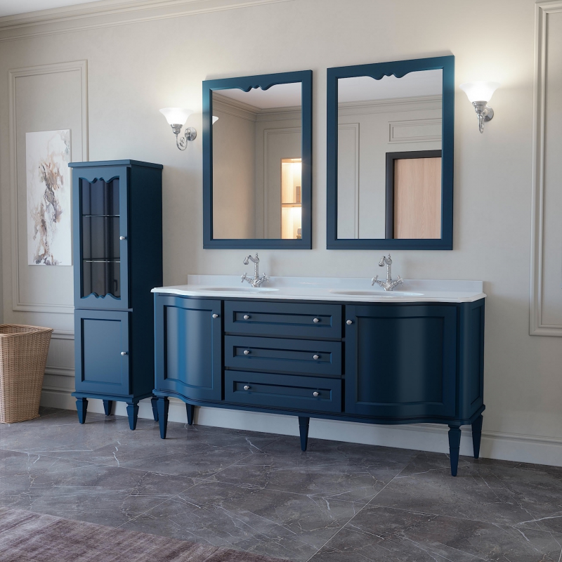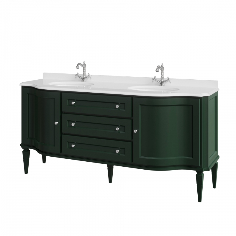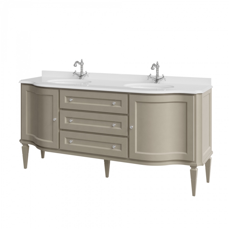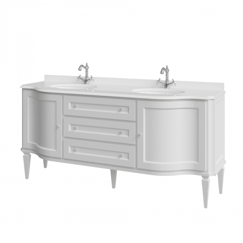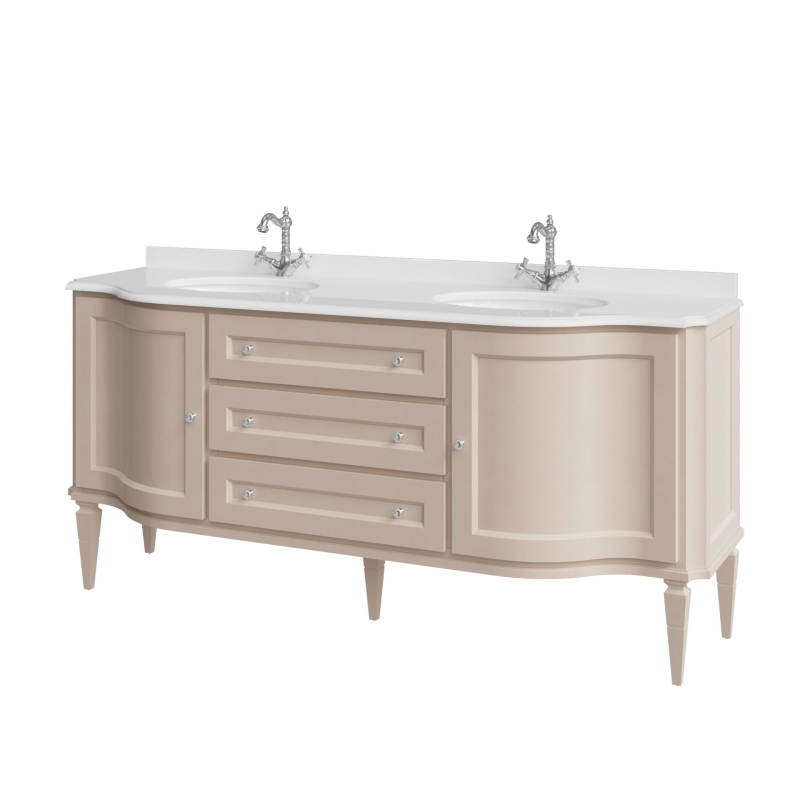 Тумба для столешницы 180см и двух раковин. Функционал - 2 выдвижных ящика и 2 двери. Выпускаются в эмалях из реестра отделок CLASSIC без патины. Варарианты раковин(фаянс)арт.: 0222WK; Сева DUO. Отдельно заказывается столешница.