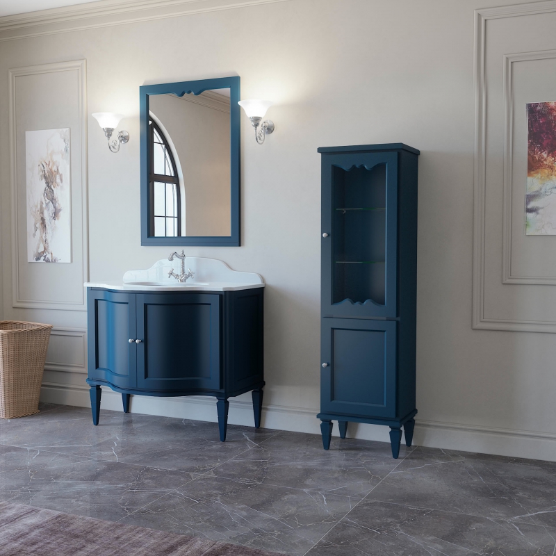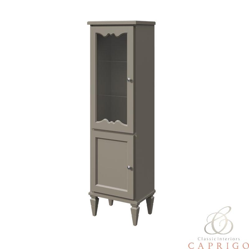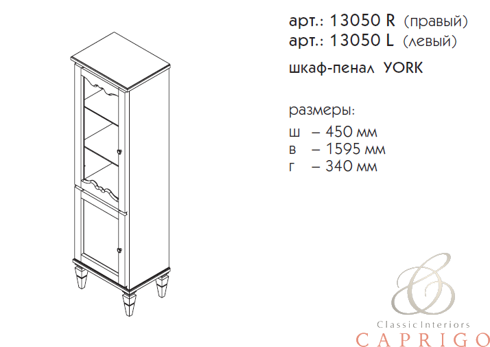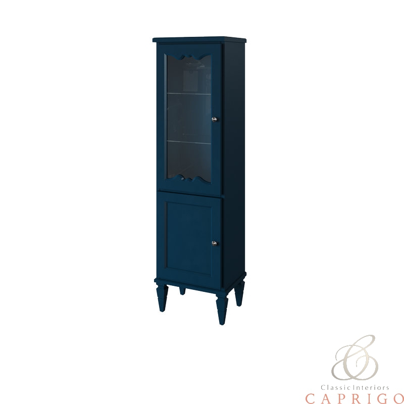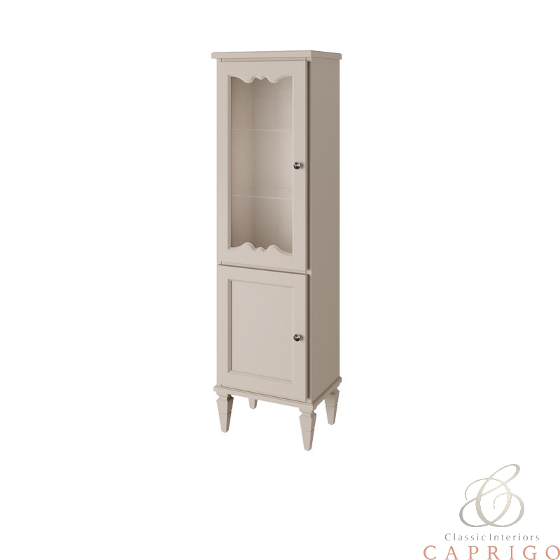 Шкаф-пенал YORK верхний фасад со стеклом выпускается в отделках категория ЭМАЛИ – SPECIAL ENAMEL category реестра отделок CLASSIC без патинирования верхний фасад со стеклом (верхняя дверца – стекло) две стеклянные полки