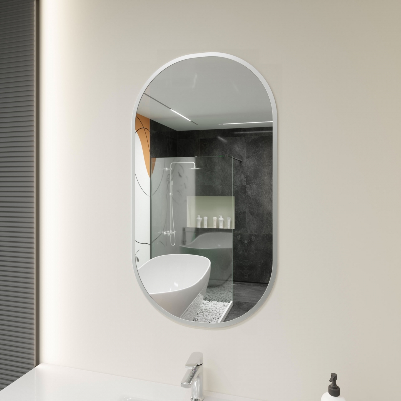 модель Зеркало овальное на подложке с тонкой рамкой по периметру покрытие рамки – эмаль Хром.